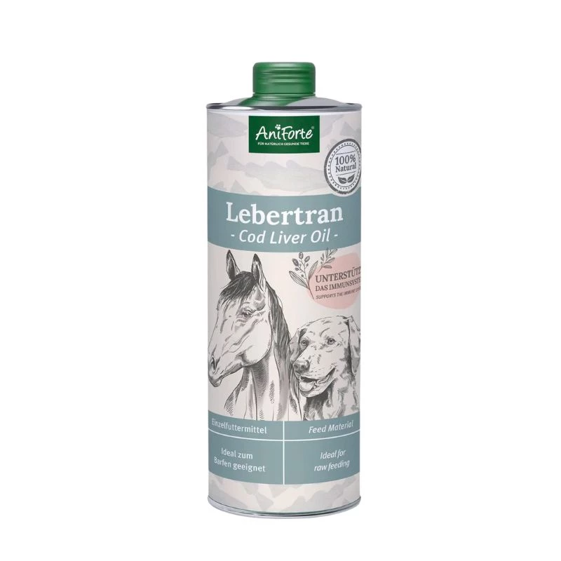 L’olio di fegato di merluzzo fornisce al vostro animale questi acidi grassi essenziali e quindi supporta il sistema immunitario e la struttura ossea.