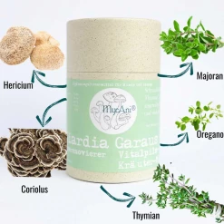 Origano, timo e maggiorana e sono supportati dai funghi HERICIUM e CORIOLUS.