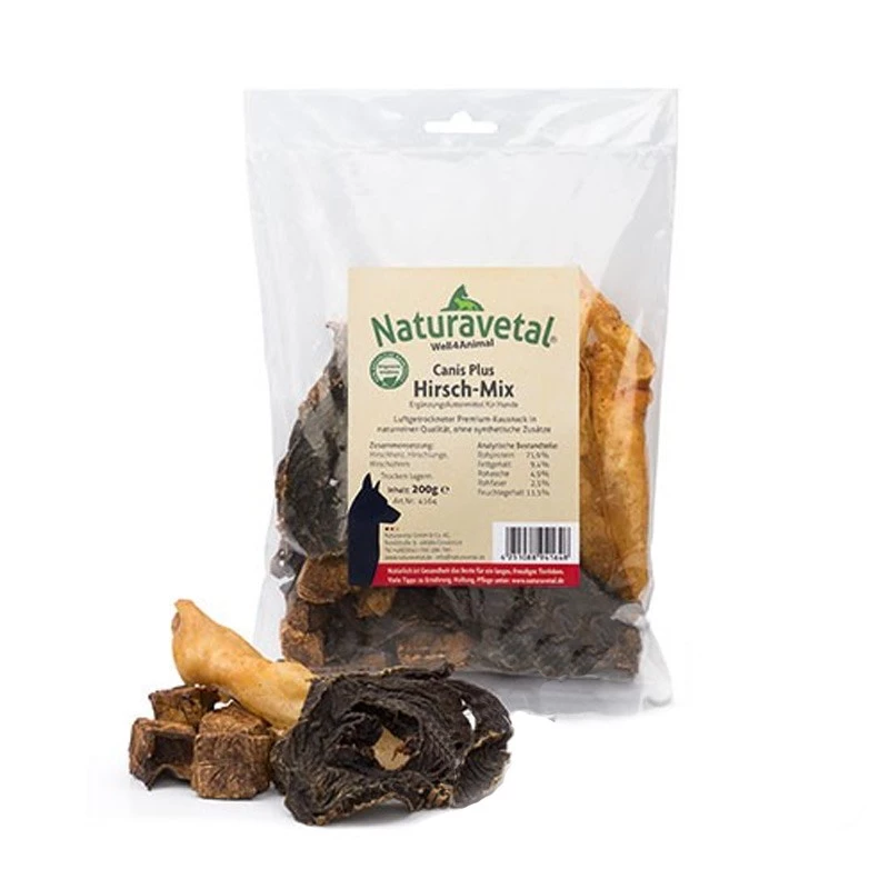 Ricca, sostanziosa e gustosa miscela di diverse specialità di carne di cervo essiccata all’aria di diverse dimensioni .