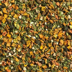Zucca a Dadini 30%, Carote 15%,Fiocchi di spinaci 15%,Granulato di Shiitake 12,5%,Bacche di Aronia 5%,Bacche di olivello spinoso 5%,Basilico 5%,Fichi 4%,Semi di Chia 3,5%,Albicocche 3%,Santoreggia 2%.
