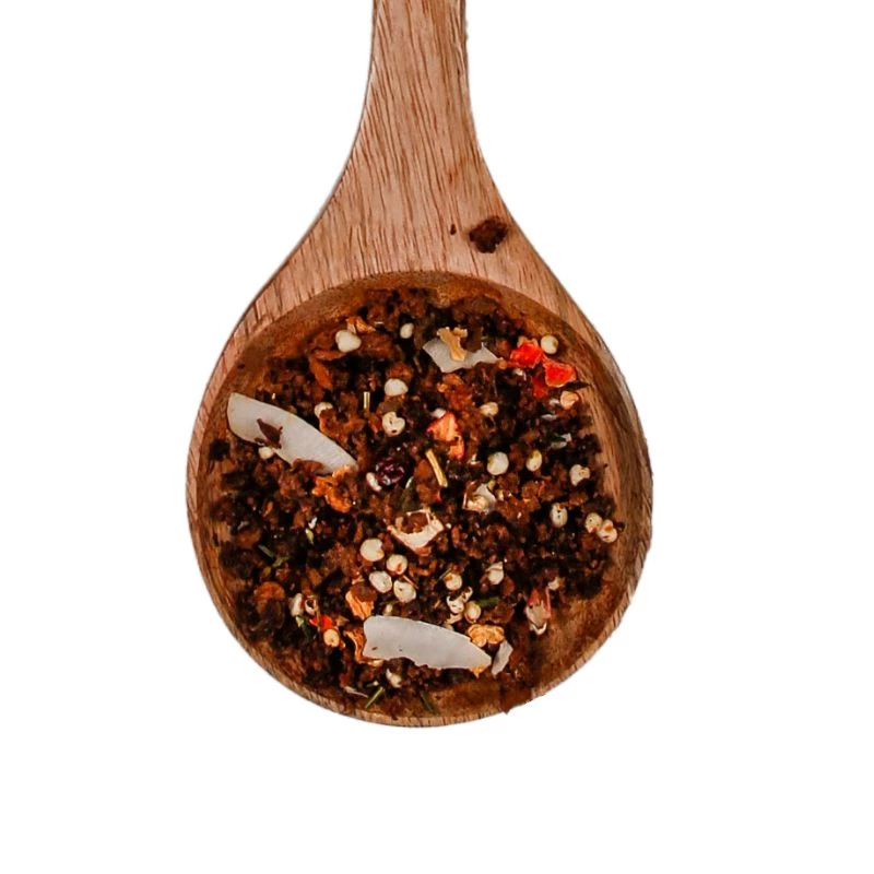 Il MUESLI ALPINO di Paul & Paulina è composto per il 75% da carne delicatamente essiccata all’aria e per il 25% da miglio, frutta, verdura ed erbe aromatiche.