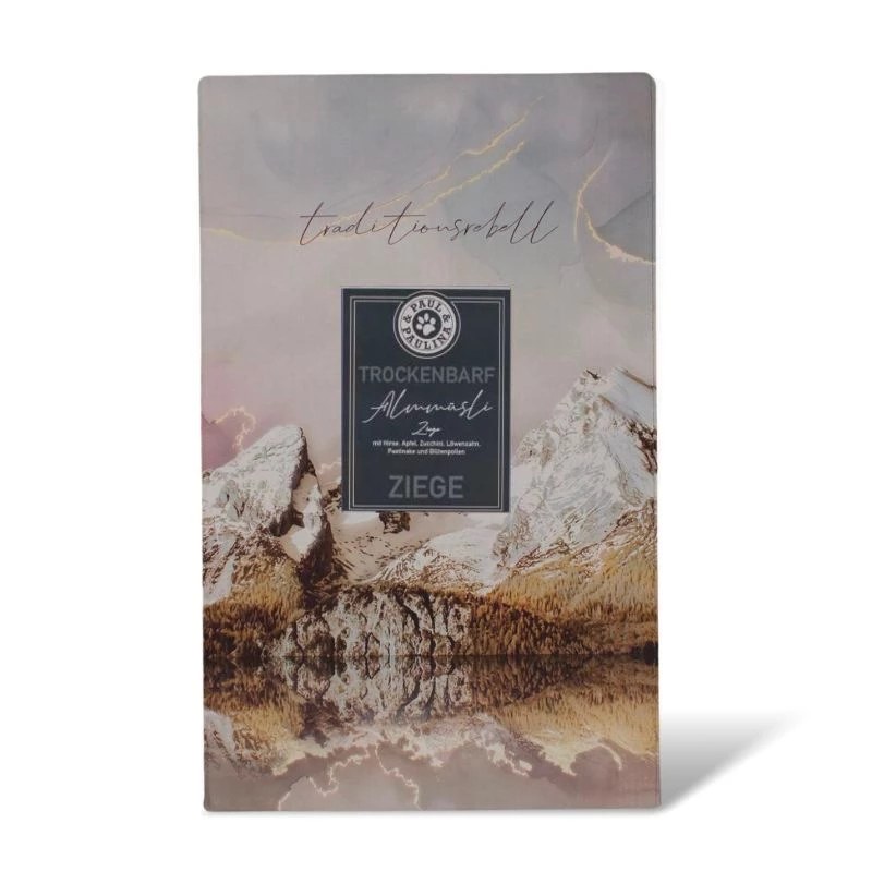 Il MUESLI ALPINO di Paul & Paulina è composto per il 75% da carne delicatamente essiccata all’aria e per il 25% da miglio, frutta, verdura ed erbe aromatiche.