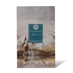 100% carne di coniglio macinata ed essiccata: 40% muscolo, 20% rumine, 20% cuore, 8% fegato, 5% rene, 5% milza, 2%