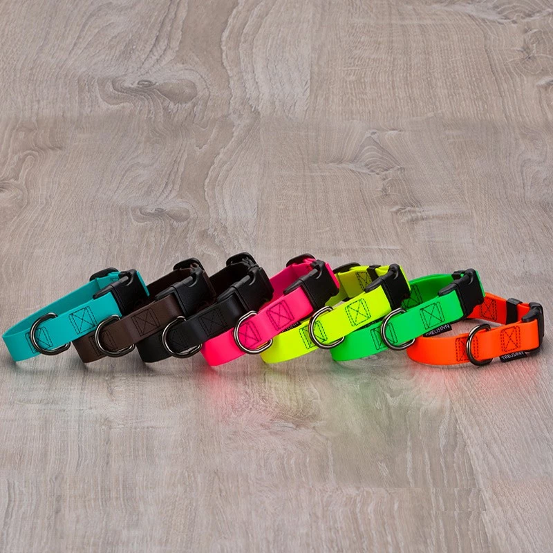 I collari regolabili per cani Treusinn in BioThane® vegan sono facili da aprire e chiudere grazie alla pratica chiusura a scatto.