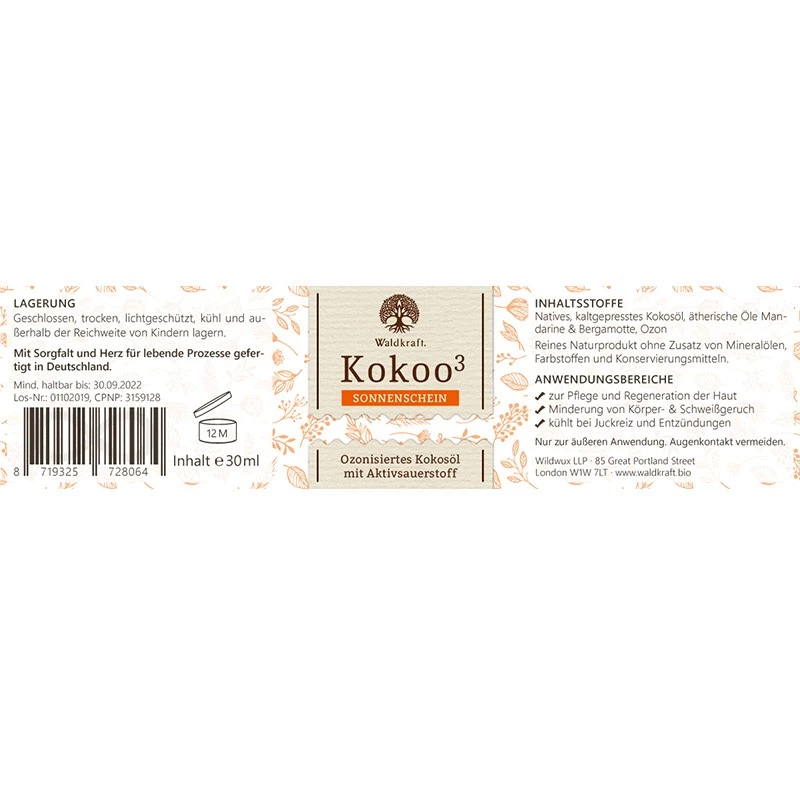 Kokoo³ Sonnenschein – Olio di cocco ozonizzato con Mandarino e Bergamotto per la cura della pelle.