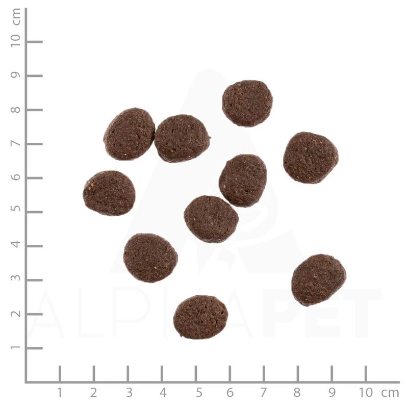 Salmone fresco 25%, trota essiccata 24%, patate 14%, amido di piselli 12%, grasso di pollo, piselli 4%, fagioli 4%, semi di lino 2%, polpa di barbabietola, lievito di birra, alghe 0,3%, polpa di cicoria, frutto-oligosaccaridi (FOS 0,2%), estratto di lievito (MOS 0,2%), cloruro di sodio, estratto di yucca 0,03%, cardo mariano 0,02%, tarassaco 0,02%, rosmarino 0,02%, ibisco 0,02%, rosa canina 0,002%.