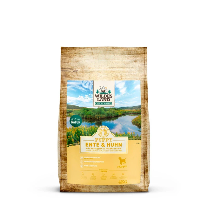 Elevata accettazione: pollo insieme a carne d’anatra fresca assicura un’accettazione particolarmente elevata e un’eccellente tolleranza nei cuccioli.